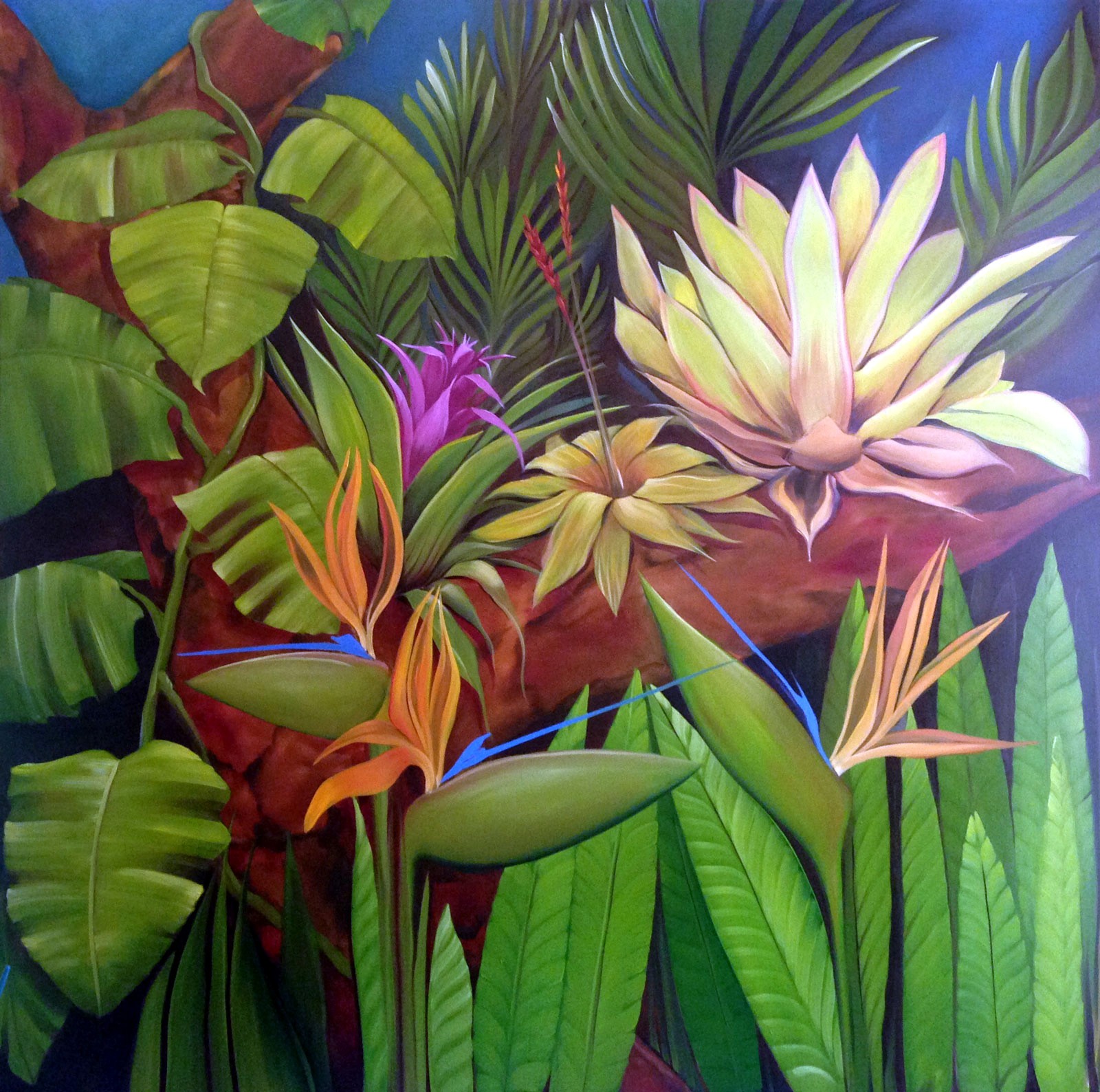 TROPICAL GARDEN. OIL ON CANVAS 5’ X 5’